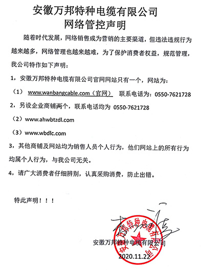 鄭重聲明:安徽萬邦特種電纜有限公司官方網站為:www_wanbangcable_com.smartymoms.com,除此之外無任何子網站或合作網站,其余均為假冒偽劣。電話:0550-7621728 13485756353 地 址:安徽省天長市滁州高新技術產業開發區經四路29號